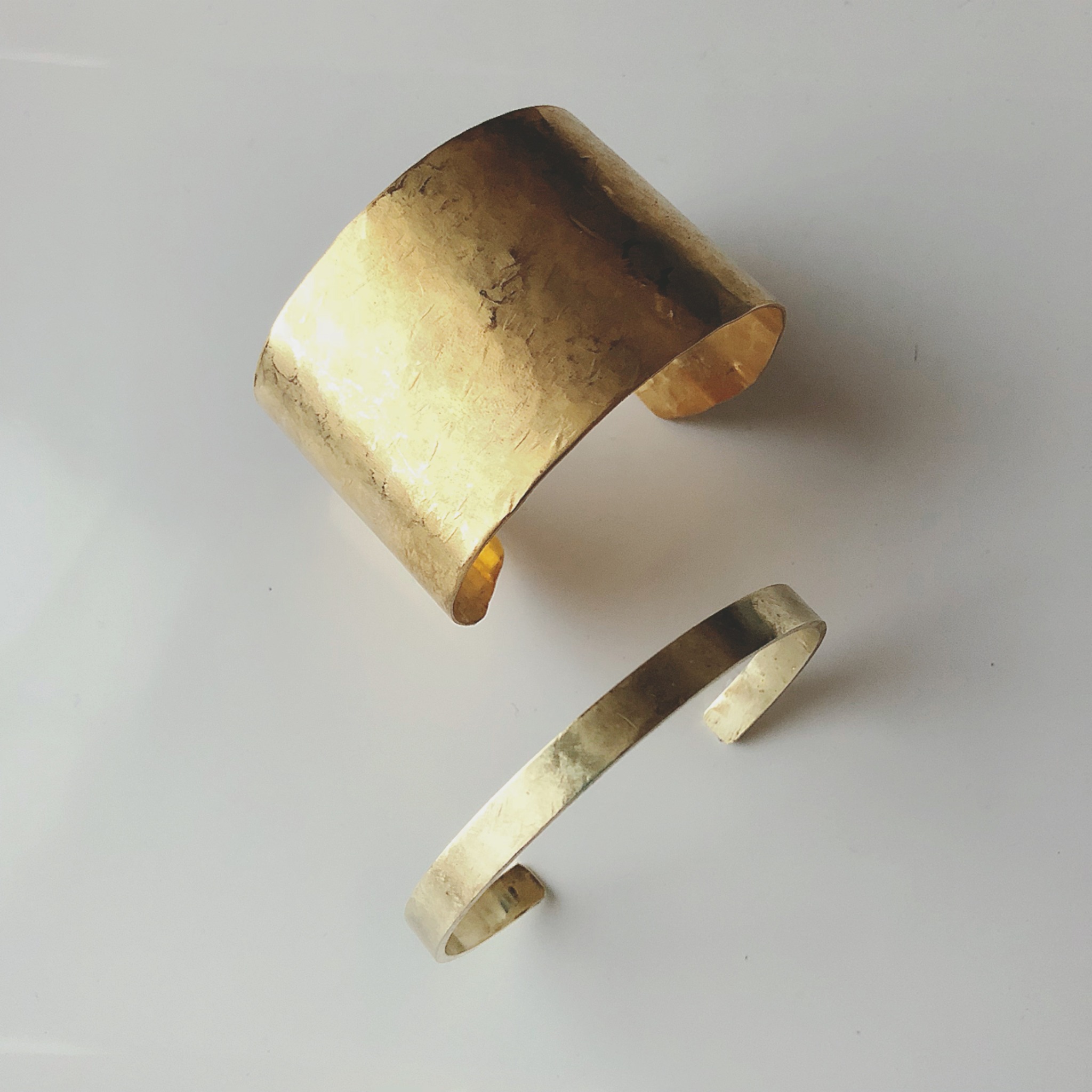 真鍮の太バングル(太さ約4㎝)と真鍮の平角バングル(太さ約6㎜)